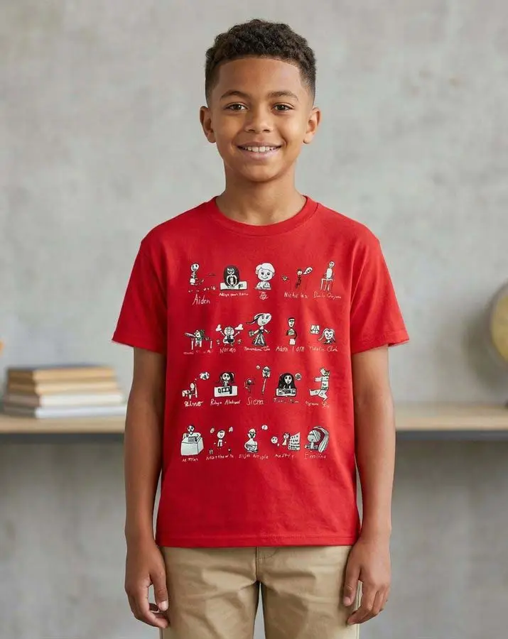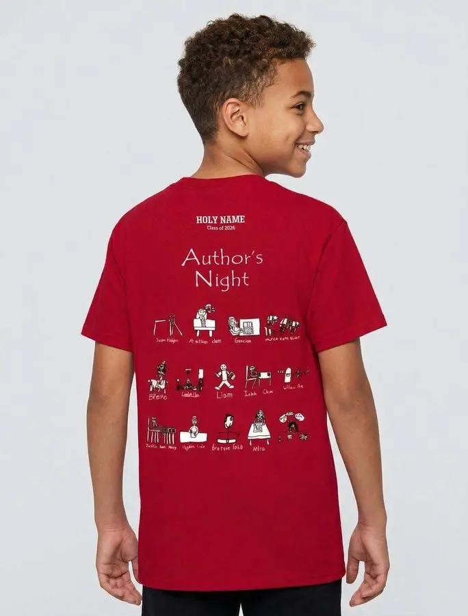 Some of our most meaningful projects have come directly from that involvement. When a teacher asked for a simple logo for Author’s Night, we saw something bigger — a chance to put the kids’ own artwork on the shirt. It took weeks to gather every student’s drawing and make each sketch print-ready, but watching the kids wear their own art — and seeing their families wear it too — made every hour worth it. That’s the kind of work we’re here to do.